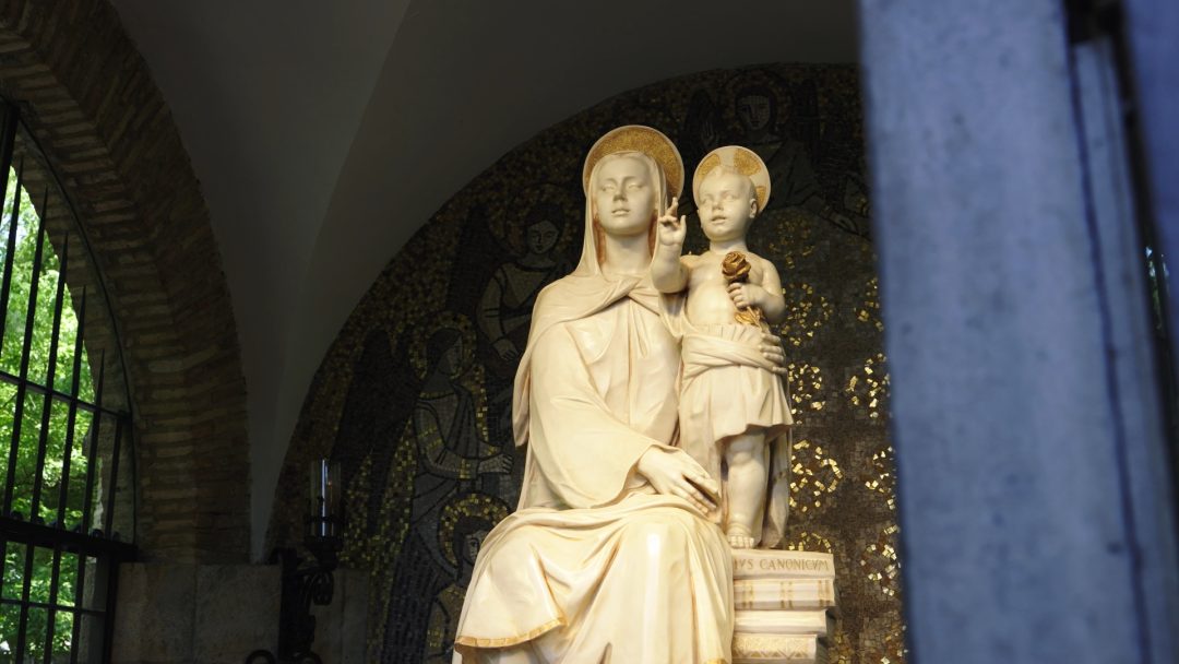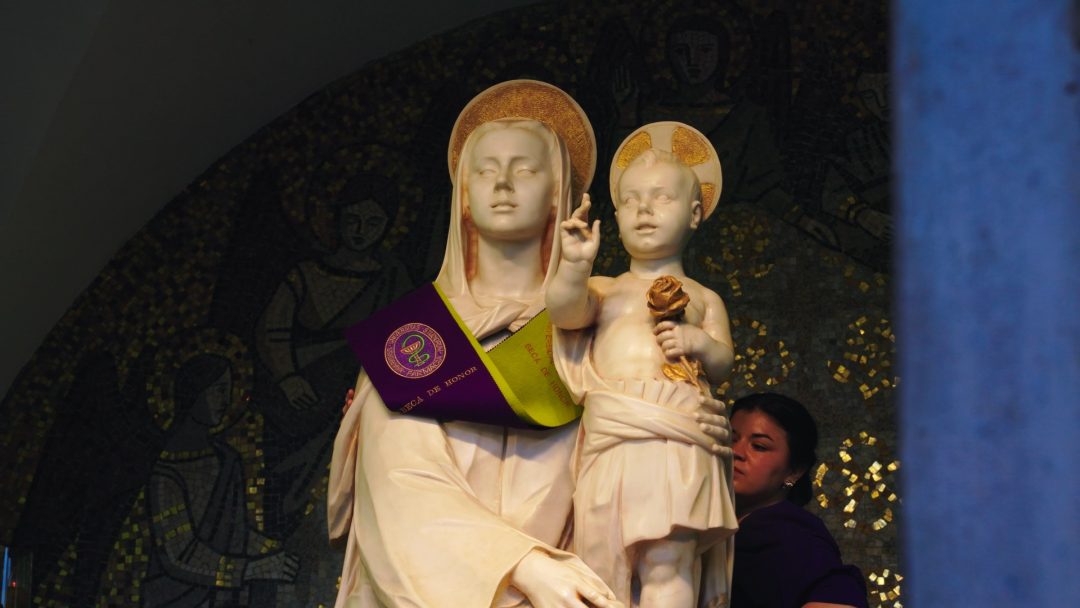En la graduación, los alumnos ofrecen esta etapa universitaria a los pies de la Virgen del campus, la Madre del Amor Hermoso.